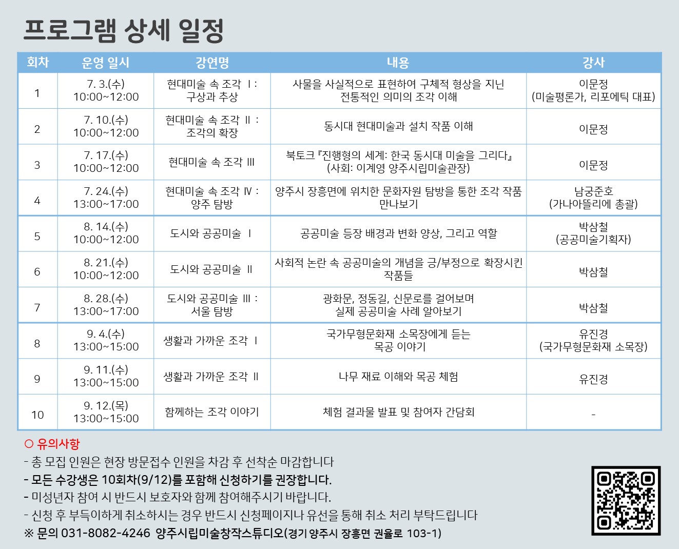 10회 마감 함께하는 조각 이야기 - null ~ null 2024.09.12 13:00 ~ 15:00 양주시립미술창작스튜디오 1층 4/20