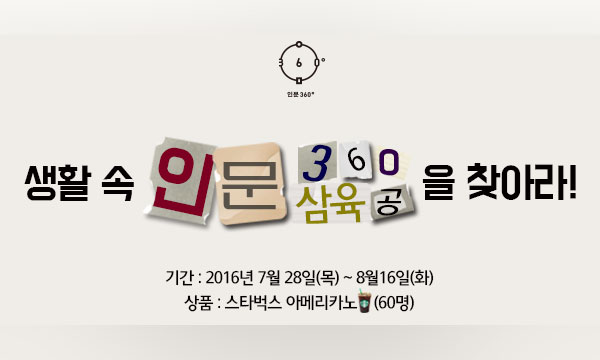 ▶ 응모방법 : 인문360˚홈페이지> 1˚> 이벤트 > 참여하기
