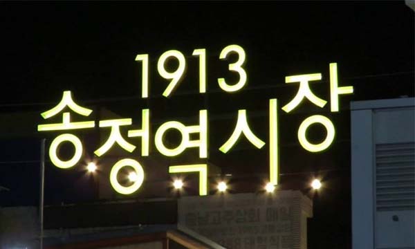 송정역 시장 골목의 바닥에는 건물 연도가 쓰여져 있으며, 이 숫자가 가리키는 방향에 있는 건물의 완공 연도를 표시한 것으로 오랜 역사를 가진 시장의 모습을 되짓을 수 있을 것이다.