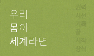 한국문화예술위원회가 보유한 '우리 몸이 세계라면' 저작물은 "공공누리" 출처표시-상업적이용금지-변경금지 조건에 따라 이용 할 수 있습니다. 단, 디자인 작품(이미지, 사진 등)의 경우 사용에 제한이 있을 수 있사오니 문의 후 이용 부탁드립니다.