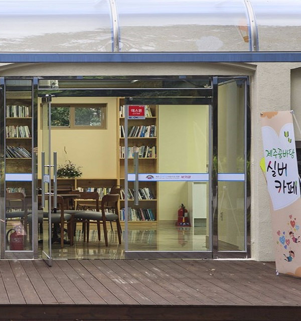 ▲ 본관 건물 내부 (열람실 전경) / 별관 (제주시자기주도학습지원센터) ⓒ제주도청 블로그 / 관리실 (꿈바당실버북카페) ⓒ제주도청 블로그