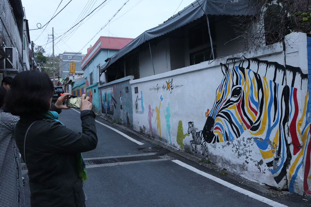 ▲ 화려한 얼룩말 벽화가 사람들 시선을 사로잡는다. ⓒ양재여