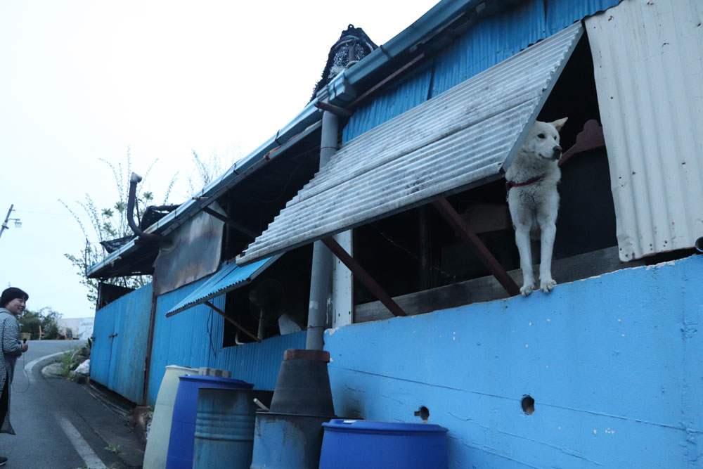▲ 대동 하늘공원 손님을 반갑게 맞이해주는 강아지 ⓒ양재여