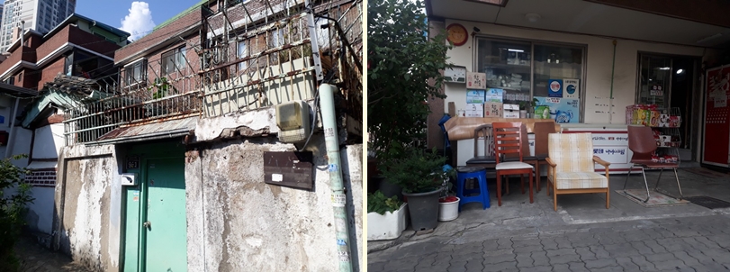 ▲ 청파동 골목의 집과 슈퍼 앞 의자들 ⓒ김은영
