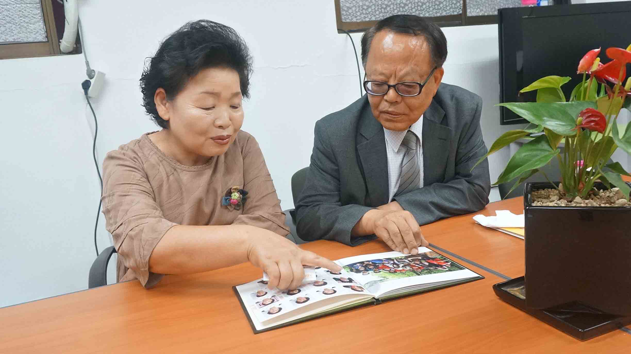 박순애 교사는 ‘내가 이곳에서 배웠으니 나 같은 사람들에게 다시 그 배움을 돌려줘야 하지 않겠나 싶었다. 지금 4년째 봉사 중인데 힘닿는 데까지 후배들을 가르치고 싶다’고 했다. 쉬는 시간에 노기현 교장과 졸업 앨범을 보며 추억에 젖는 박순애 교사 모습을 보니 사제지간이 아니라 오누이같다.