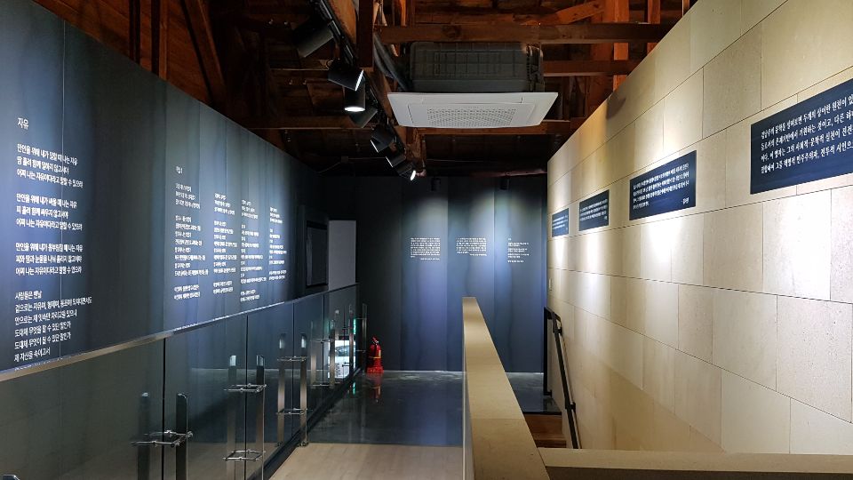 ▲1층 후면 벽에 새겨진 시 ‘조국은 하나다’ ⓒ김지원