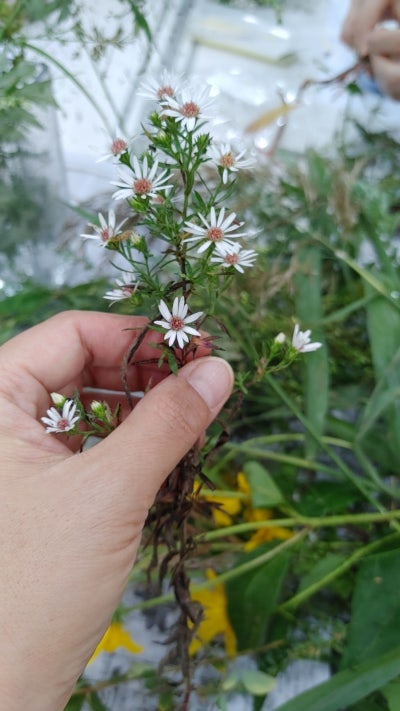 와 미국쑥부쟁이가 주를 이룬 꽃다발